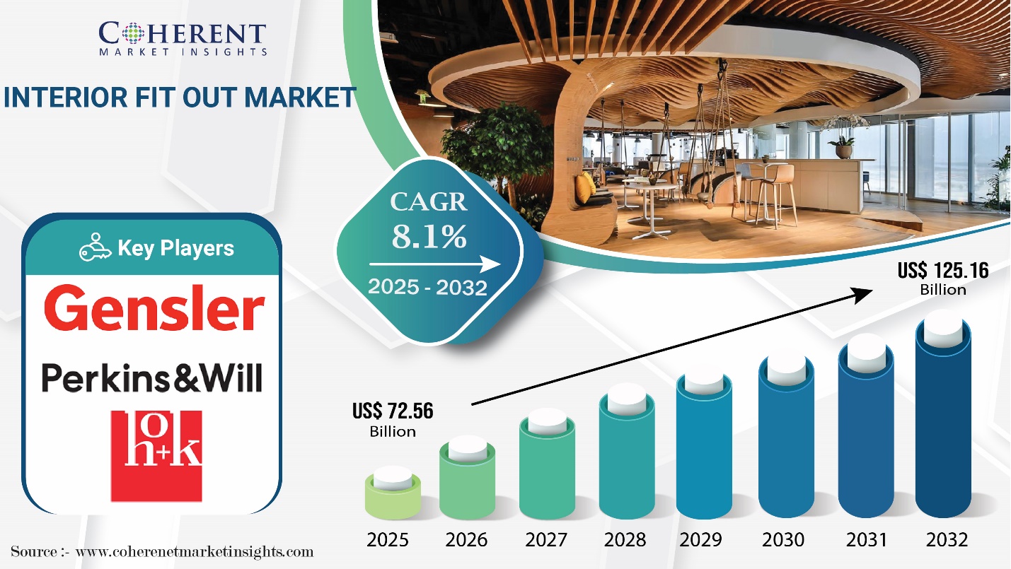 Interior Fit Out Market Poised for Growth, Expected to Hit USD 125.16 Billion by 2032 -Coherent Market Insights